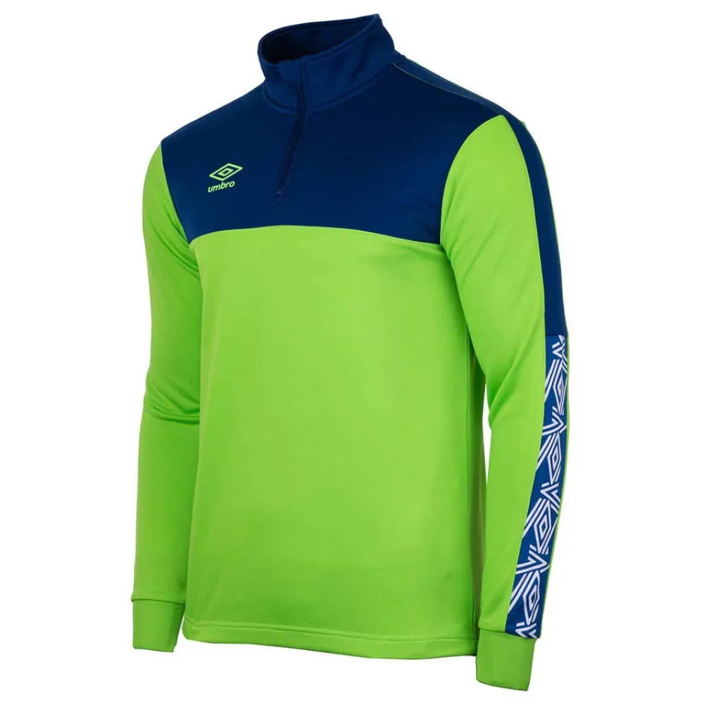 Half-zip sweatshirt that features a contrasting yoke and side stripes on the sleeves.